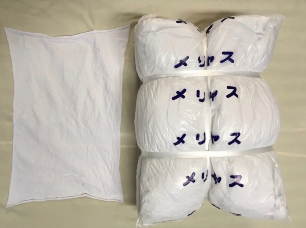 白色(Yシャツや枕カバー等)のウエスです。一般作業用として、幅広く工業の現場で油の拭き取り等に使用できます。